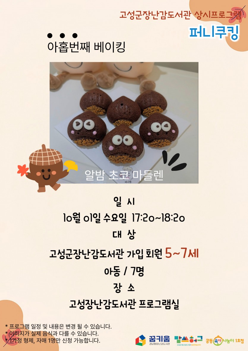 ■ 고성군장난감도서관 상시프로그램 베이킹 퍼니쿠킹 프로그램<<선정자 발표>> |