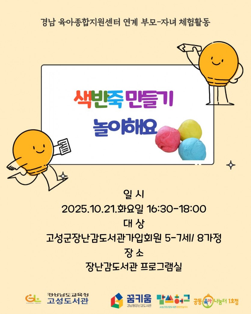 ■ 고성군공동육아나눔터1호점& 경남육아종합지원센터 연계 부모-자녀 체험활동 [색반죽 만들기 놀이해요] <<선정자 발표>> |