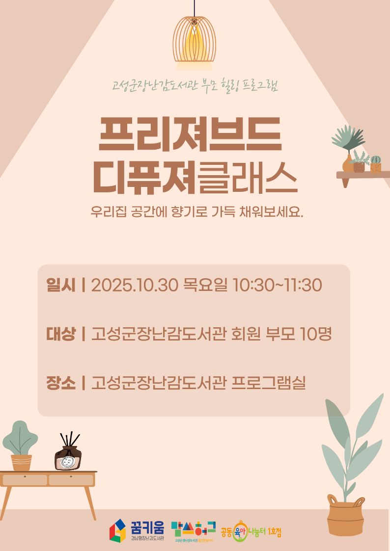 ■ 고성군장난감도서관 부모 힐링 교육 [프리져브드 디퓨져 만들기] 프로그램<<선정자 발표>> |