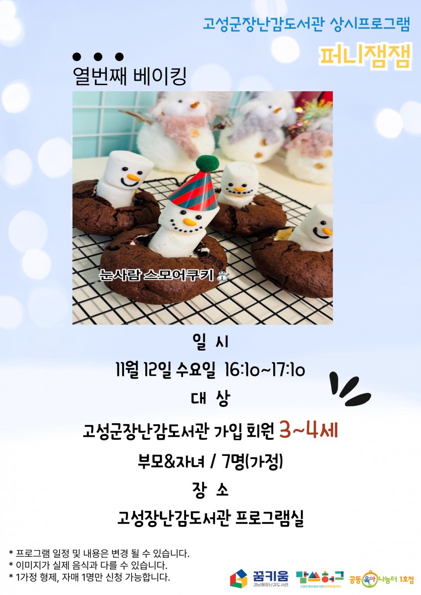 ■ 고성군장난감도서관 상시프로그램 베이킹 퍼니잼잼 프로그램 [눈사람 스모어 쿠키] |