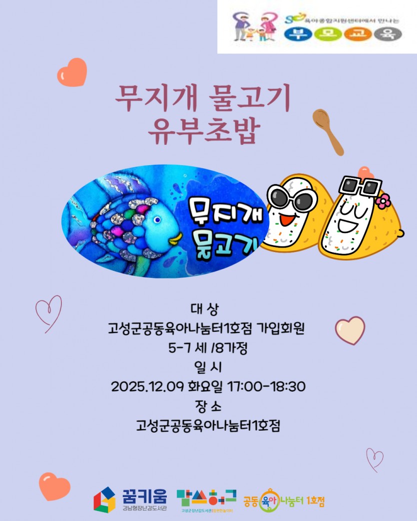 ■ 고성군공동육아나눔터1호점&경남육아종합지원센터 연계 부모 -자녀 체험활동[ 무지개 물고기 유부초밥 만들어요] |