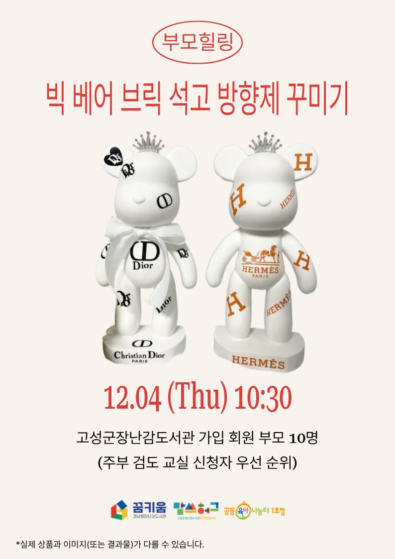 ■ 고성군장난감도서관 부모 힐링 교육 [빅 베어 브릭 석고 방향제 꾸미기] 프로그램<<선정자 발표>> |